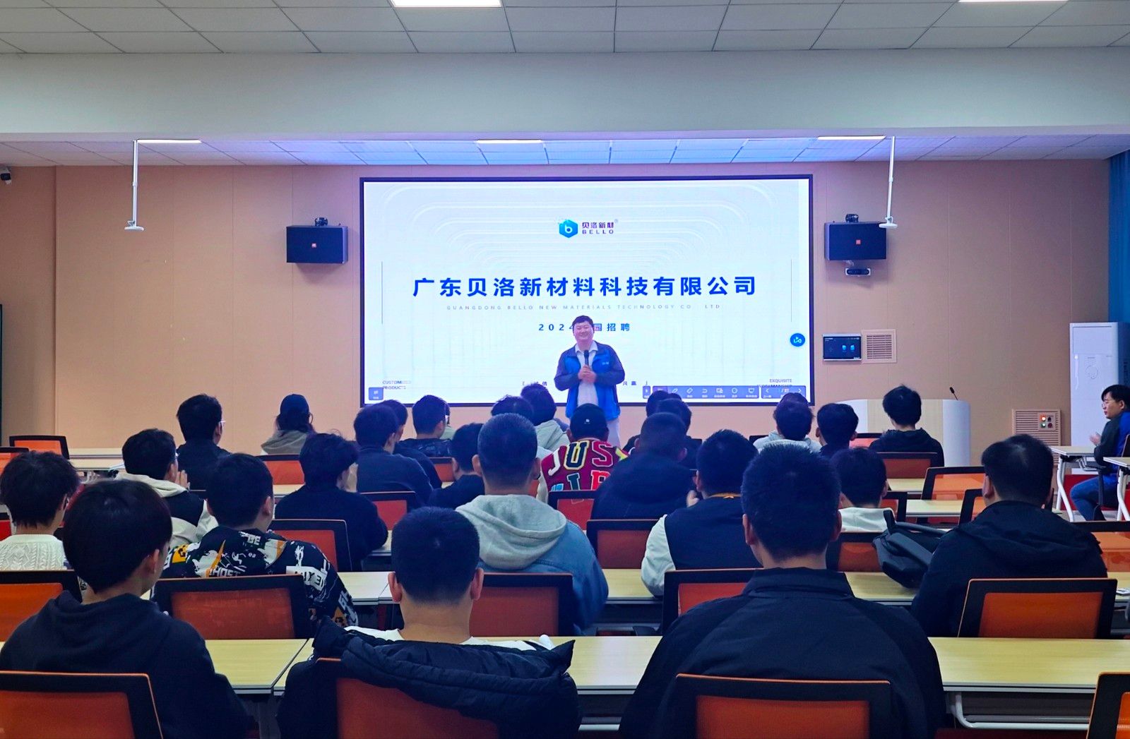 本网讯(文/图 李健雯)为帮助2025届毕业生进一步拓宽择业渠道,提供更多就业机会,增强就业工作实效,11月11日上午,汽车工程学院邀请广东贝洛新材料科技有限公司来校,在学院职工之家举办专场招聘宣讲会。