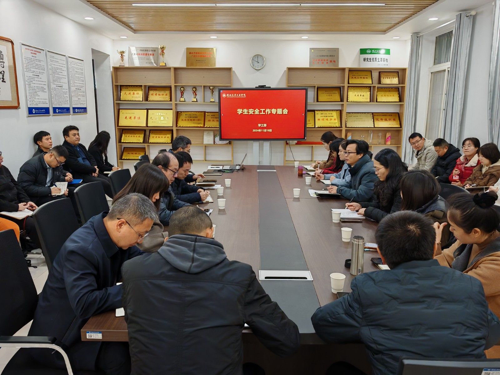 本网讯(文/黄聪悰)11月18日上午,学工部在一教1126会议室召开学生安全工作专题会。学工部部长王关锋、保卫处处长杨长春、学工部副部长杜昕俊出席会议,各二级学院分党委副书记和学生工作办公室主任参会。