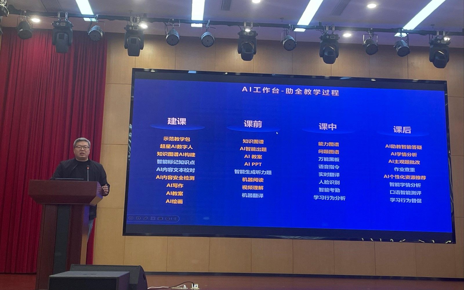 会上,湖北超星智慧课程事业部总监魏涛介绍了知识图谱的概念、构建方法和应用场景,结合具体案例带领老师完成知识图谱的创建,并尝试利用AI工具辅助开展智慧教学。参会老师们积极发言,就知识图谱构建的技术细节、AI助教的应用场景以及如何在具体课程中实施这些新技术等问题展开了热烈的讨论。