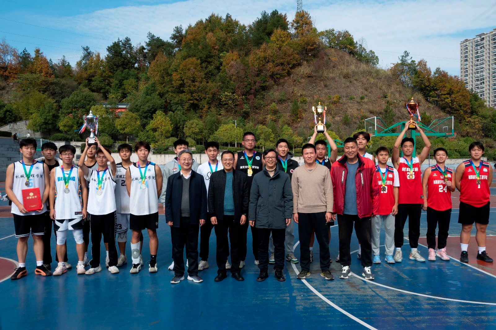 本网讯(文 高歌/图 校团委、焦万正)雨歇云散,冬日暖阳倾洒校园。11月21日中午,英国上市公司365第三届体育文化节三人制篮球比赛决赛在校篮球场举行。本次活动由校体育运动委员会主办,校团委、体育部、机械工程学院承办,学工部部长王关锋、校团委书记杜祥军、体育部副主任杨谦、机械工程学院分党委副书记马晓涛,校团委、体育部及二级学院师生到场,共同见证这场青春热情的对决。