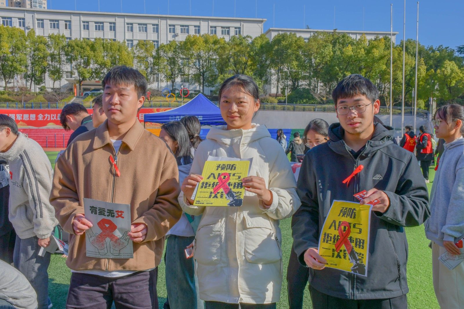 本网讯(文/丁张喜、李旭)在第37个“世界艾滋病日”来临之际,由校团委、校建管处和张湾区疾控中心联合举办的大学生防“艾”抗“艾”教育宣传活动于12月1日在南校区操场顺利举行。建管处副处长任慧玲、张湾区疾控中心彭静、常青云科长、校团委实践与社团工作部副主任李旭及校医院全体老师出席了本次活动。