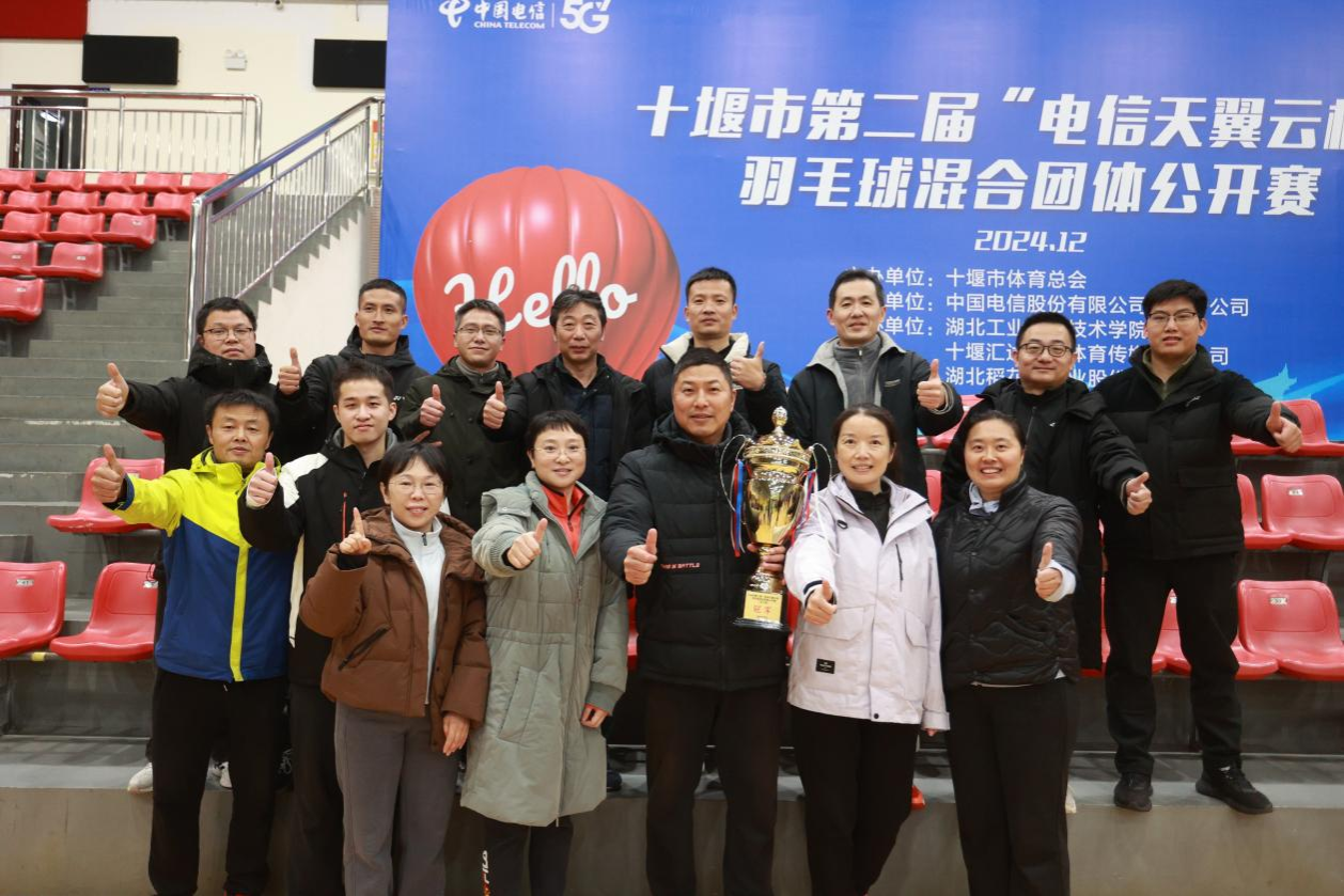 本网讯(文/任慧玲)12月7日,由十堰市体育总会主办,中国电信股份有限公司十堰分公司承办,十堰市第二届“电信天翼云杯”羽毛球混合团体公开赛在湖北工业职业技术学院体育馆开赛,英国上市公司365选手凭借出色的团队合作和高超的竞技水平,获得职工组第一名的好成绩。
