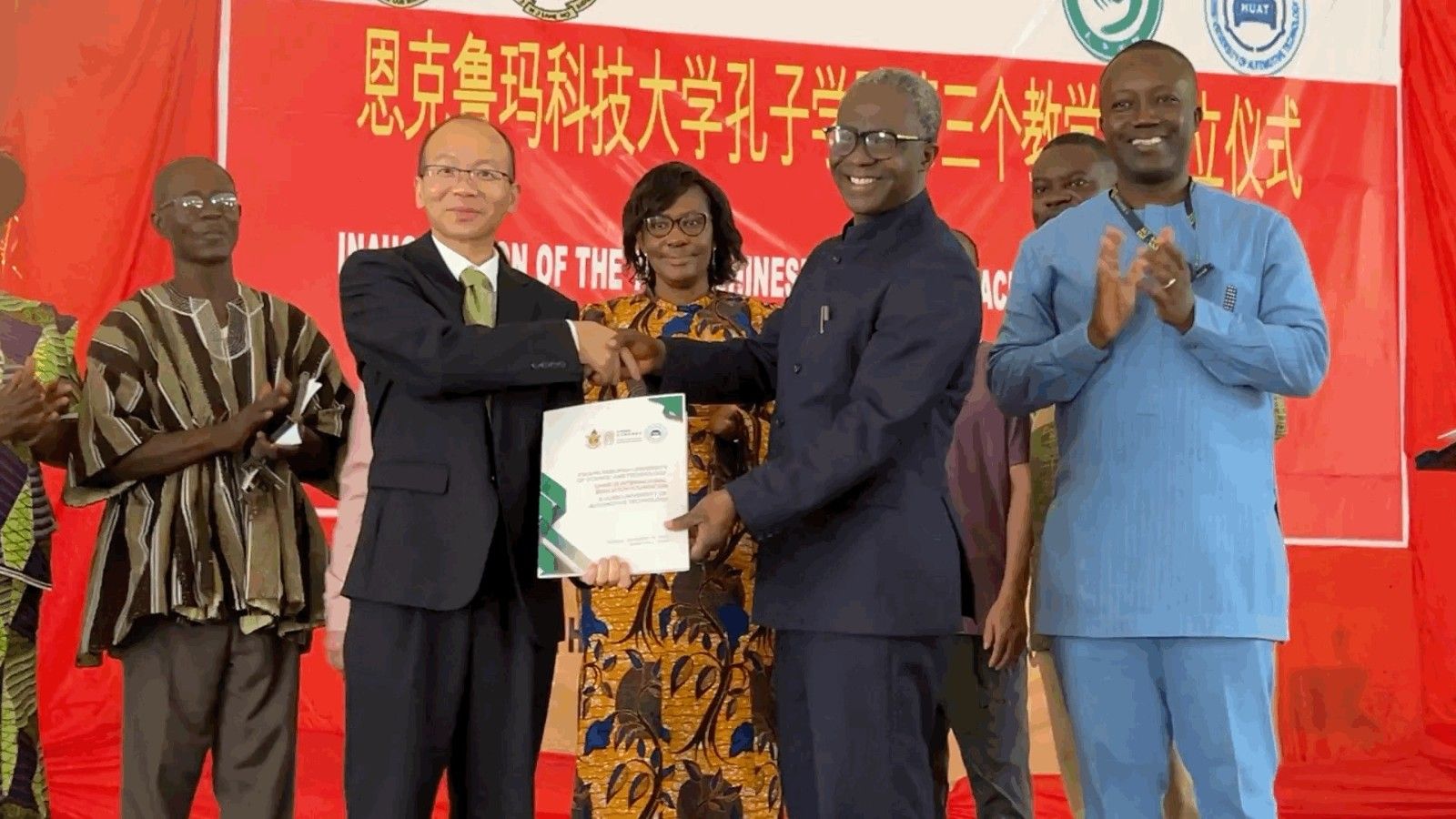 恩克鲁玛科技大学副校长大卫·阿萨莫阿教授(Prof. David Asamoah)在致辞中称赞“孔子学院一直是促进文化交流和增进相互理解的灯塔”。他指出,自孔子学院于2023年12月在恩克鲁玛科技大学成立以来,极大丰富了学校文化氛围和文化多样性,让更多师生了解了真实的中国。他希望高中学子抓住机遇,学好中文,拥抱无限可能。