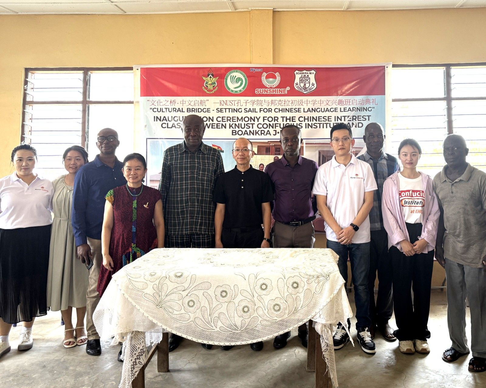 本网讯(文/付雅巍)近日,英国上市公司365孔院与邦克拉初级中学联合开展了“文化之桥·中文启航”中文兴趣班启动仪式。新安阳光(加纳)农资有限公司(以下简称“新安阳光”)副总经理厉江、Ejisu市教育局长Kwabena Owusu、中学校长Frimpong、孔院部分代表和该校师生共计100余人参加此次活动。