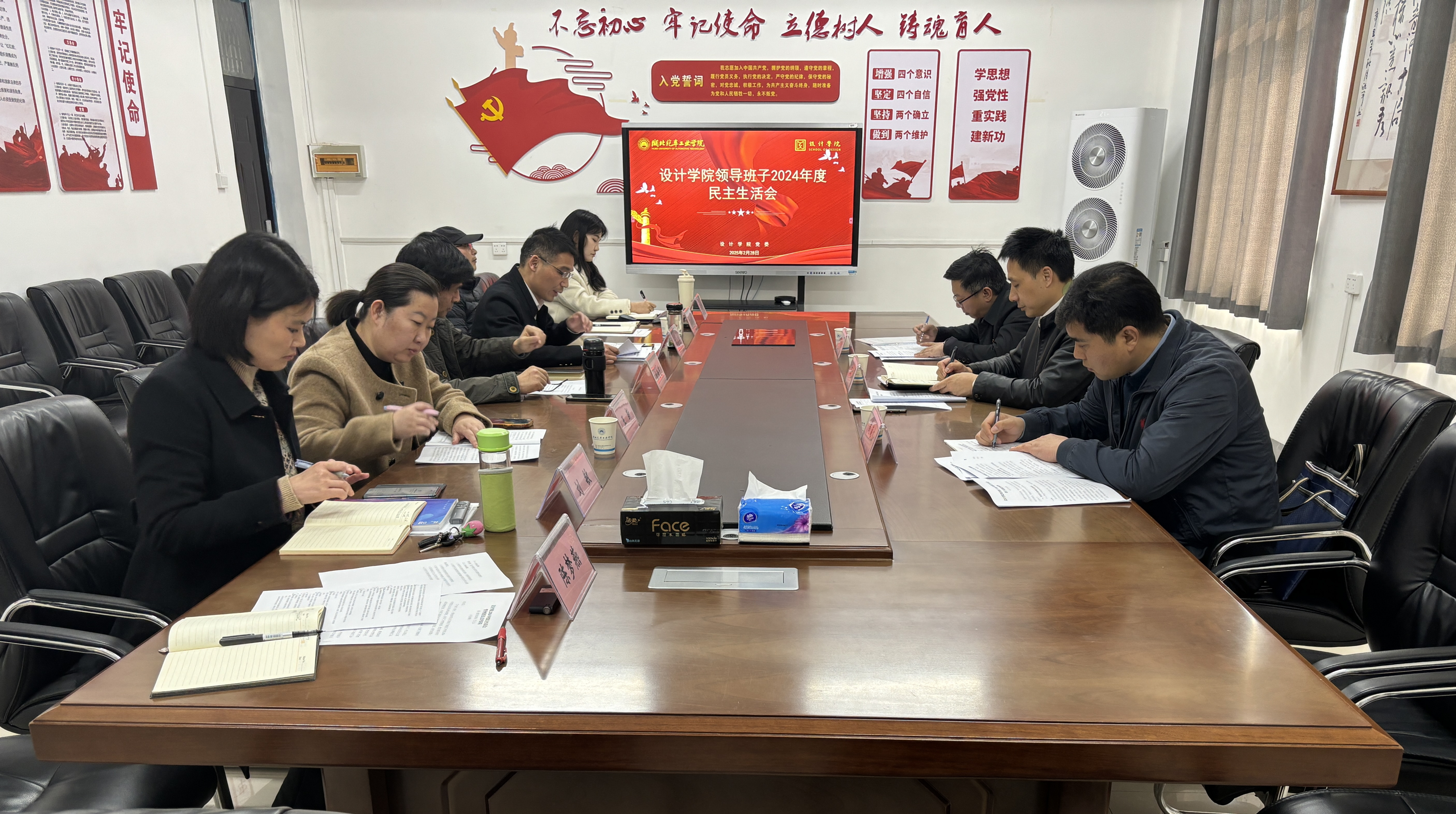 本网讯(文/图 陈梦燕)2月28日下午,艺术与设计学院领导班子在第一教学楼1419会议室召开2024年度民主生活会。校党委常委、党政办主任王文山、纪委综合室案件审理室主任尚海杰、合作发展处校友服务与基金管理科科长常金星到会指导。会议由学院党委书记黄进涛主持。