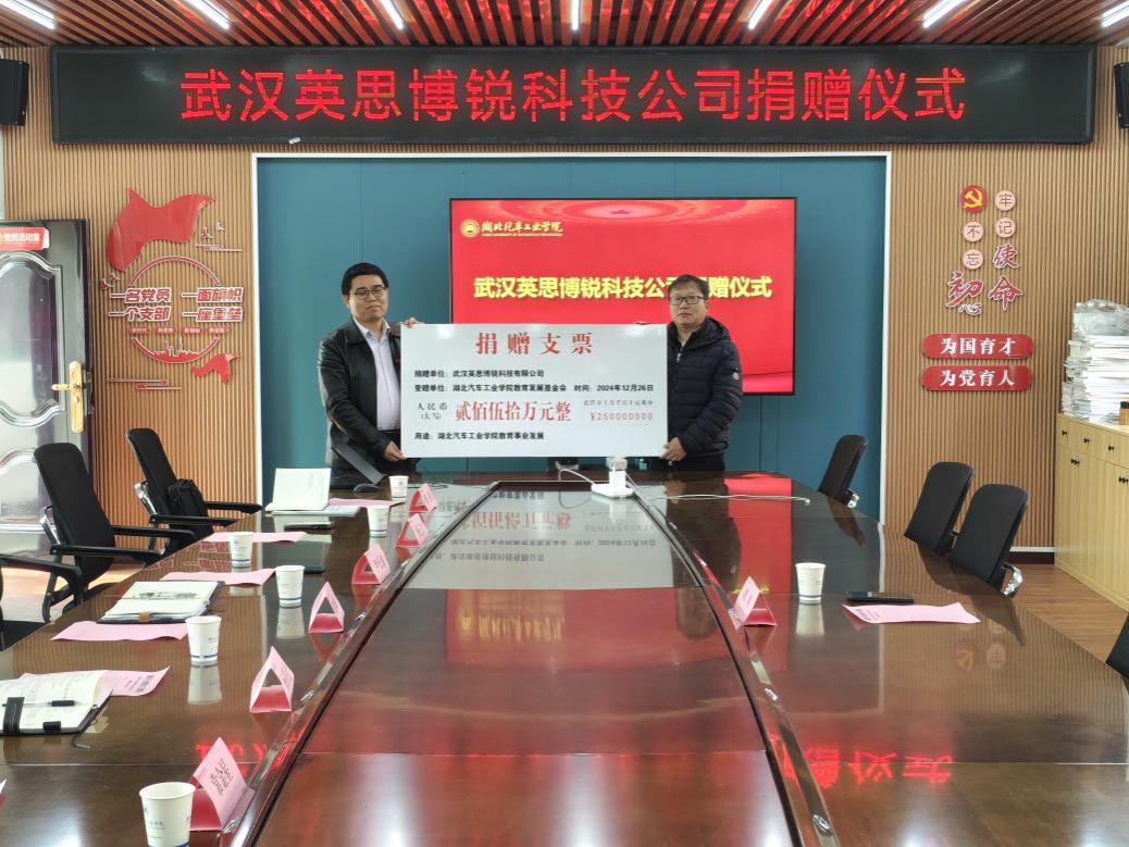 杨亚会对武汉英思博锐科技有限公司此次的捐赠表示感谢。他指出,此次武汉英思博锐科技有限公司对学校的捐赠不仅是对高等教育事业的有力支持,也是对学校师生们的极大鼓舞。学校将用好这笔捐赠款项,强化示范引领,用实际行动回馈社会企业对学校的关心支持。(审稿 杨亚会)