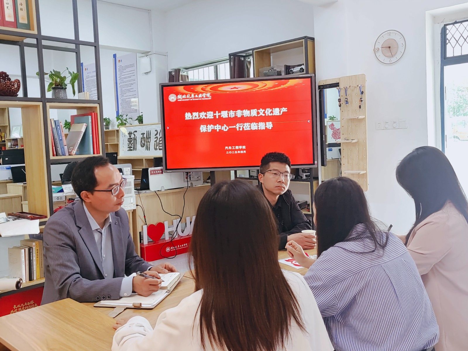本网讯(文/图 曹闪闪)4月16日上午,十堰市非物质文化遗产保护中心副主任周健一行莅临汽车工程学院,就非遗保护与传承工作展开深入调研交流,外语外贸学院院长杨荣广陪同调研。汽车工程学院党委副书记周彬,学工办主任、启为创新非遗文化保护中心负责人胡霄寒及学院团委书记李雅琨参与了座谈。