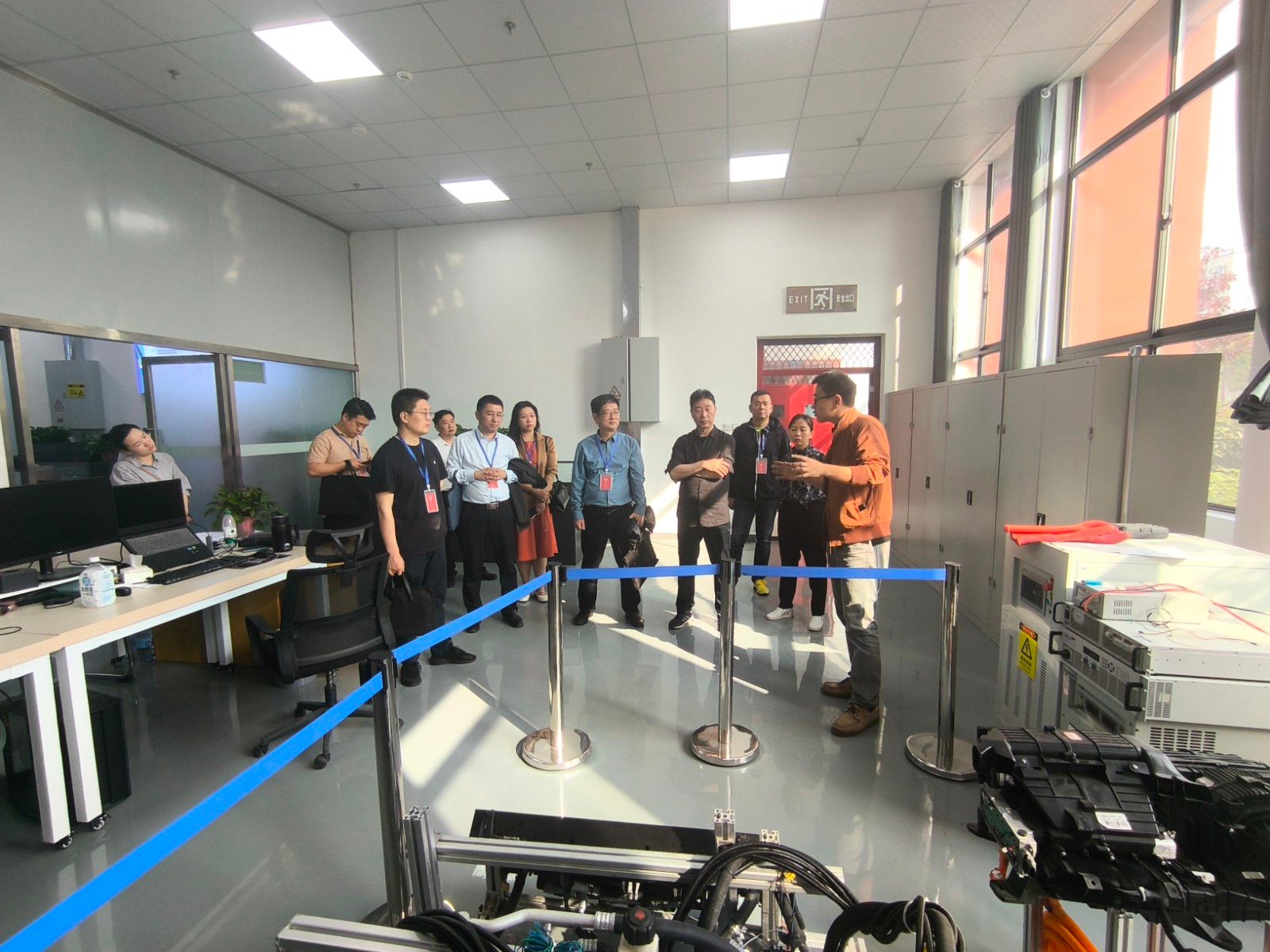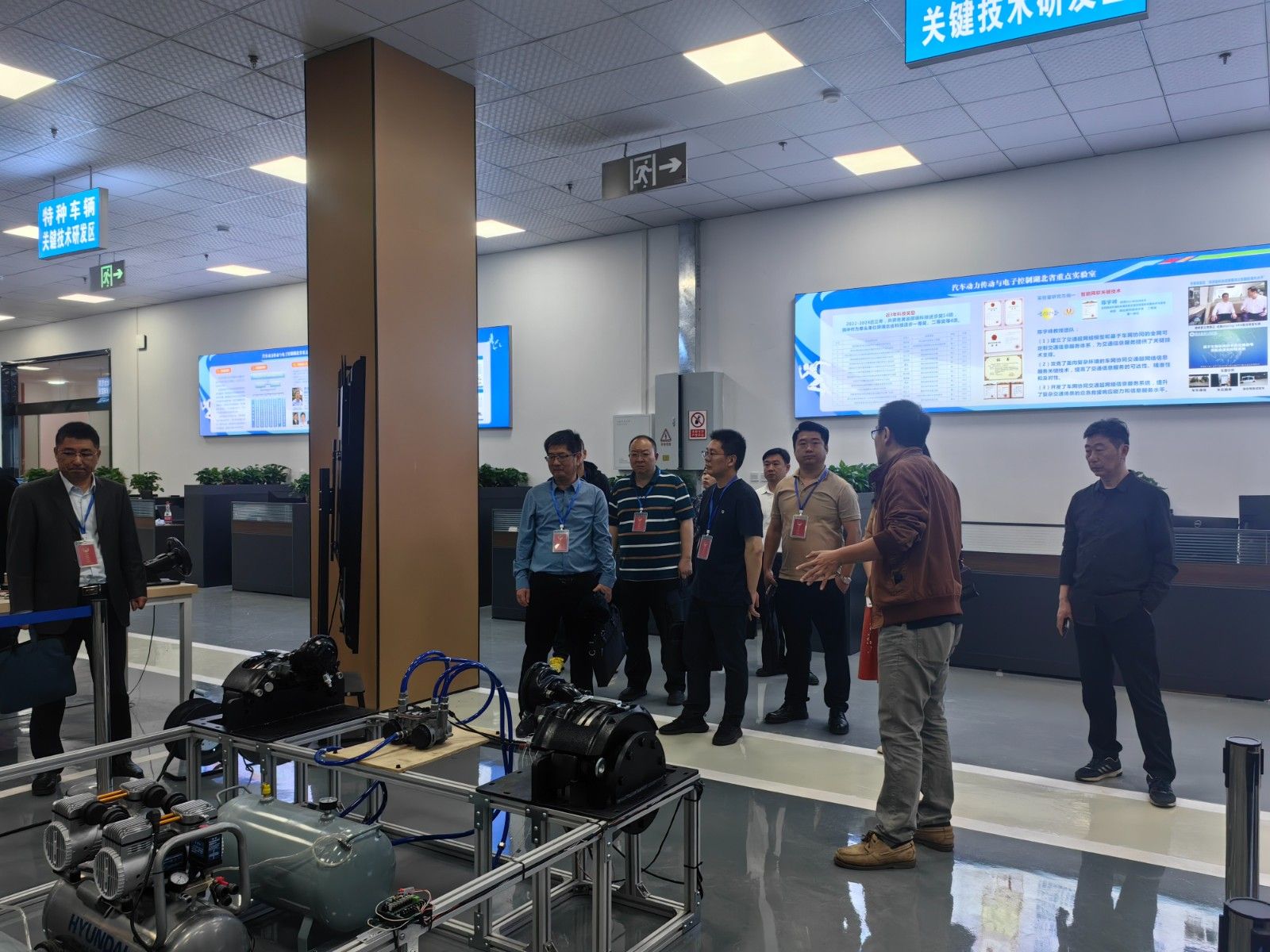 王义红一行先后参观了汽车动力传动与电子控制湖北省重点实验室、储能与动力电池湖北省重点实验室。
