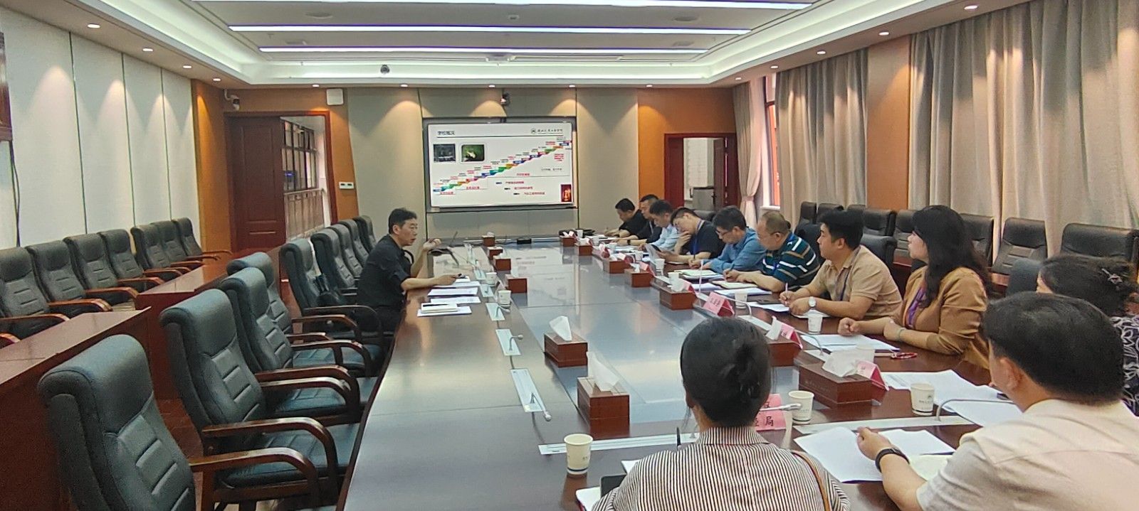 座谈会上,科发院院长张元好从科研平台、研究方向、标志性成果及服务地方等方面作学校科技创新工作汇报。与会人员围绕科研管理体系、平台建设机制、产学研合作模式、社会服务等调研主题作深入交流。