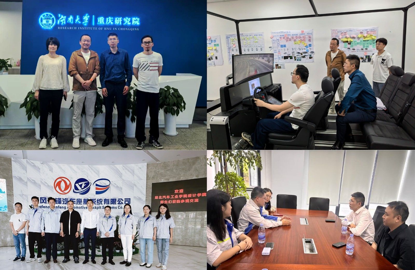 在湖南大学重庆研究院,与马超民教授团队围绕智能交互设计专业、智能座舱设计人才培养进行了交流。马超民教授介绍了团队开展多模态交互设计、UE虚拟场景平台设计、智能交互实验台架研究的整体情况,并分享了湖南大学项目制教学经验,为智能交互专业建设与人才培养分层培养策略优化提供新思路。