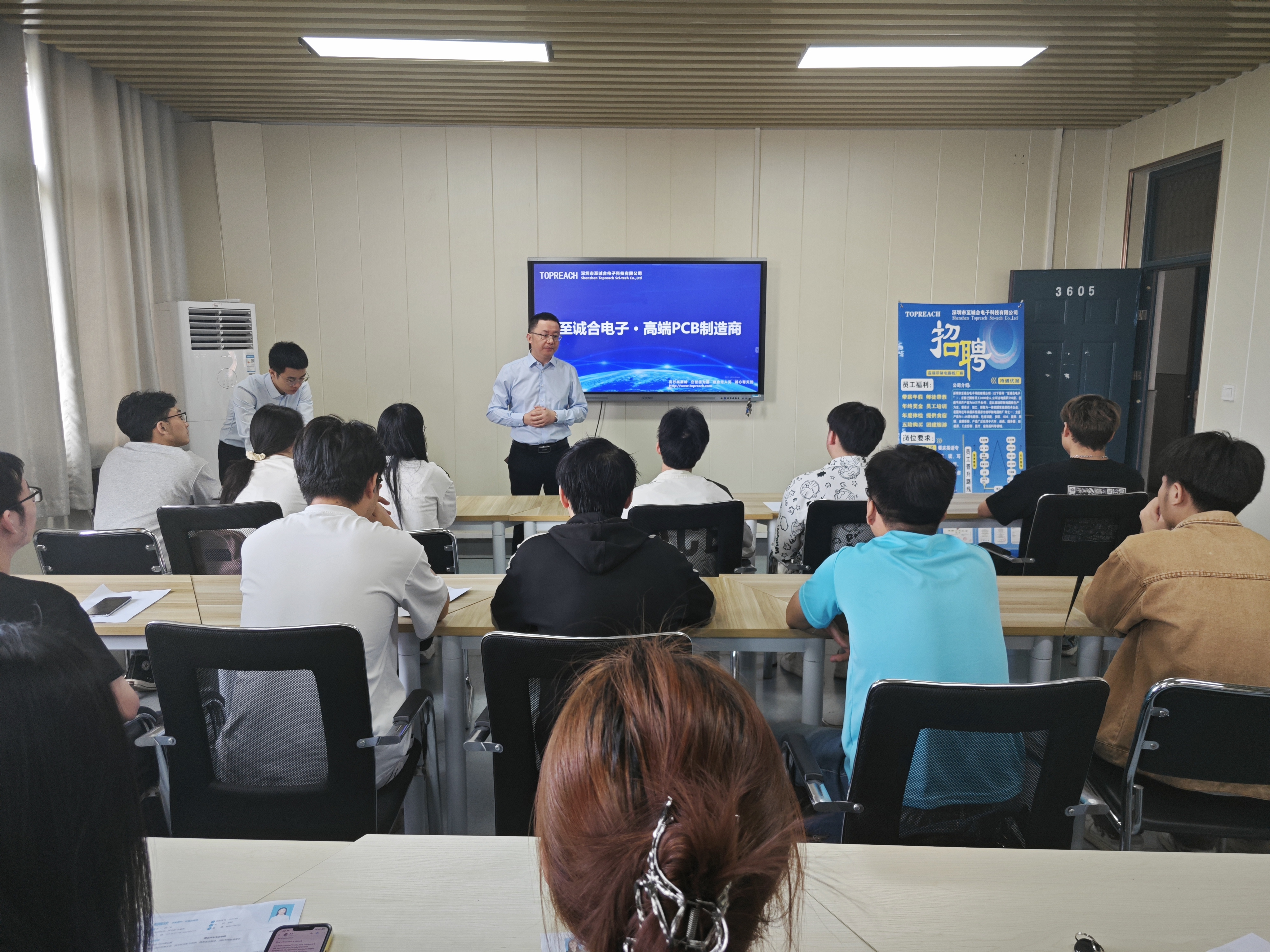 下午,专场招聘宣讲会在第五教学楼5204举行。田生在宣讲会上进一步介绍公司发展历程、组织架构等基本情况,阐述了公司的业务范围和发展规划,并重点明确了招聘岗位所需的专业知识储备、沟通能力要求等。在互动环节,学生们围绕职业发展前景等方面积极提问,公司代表一一耐心解答。宣讲会结束后,公司立即组织笔试和面试,对应聘者的专业知识水平和综合素养进行全面考核。