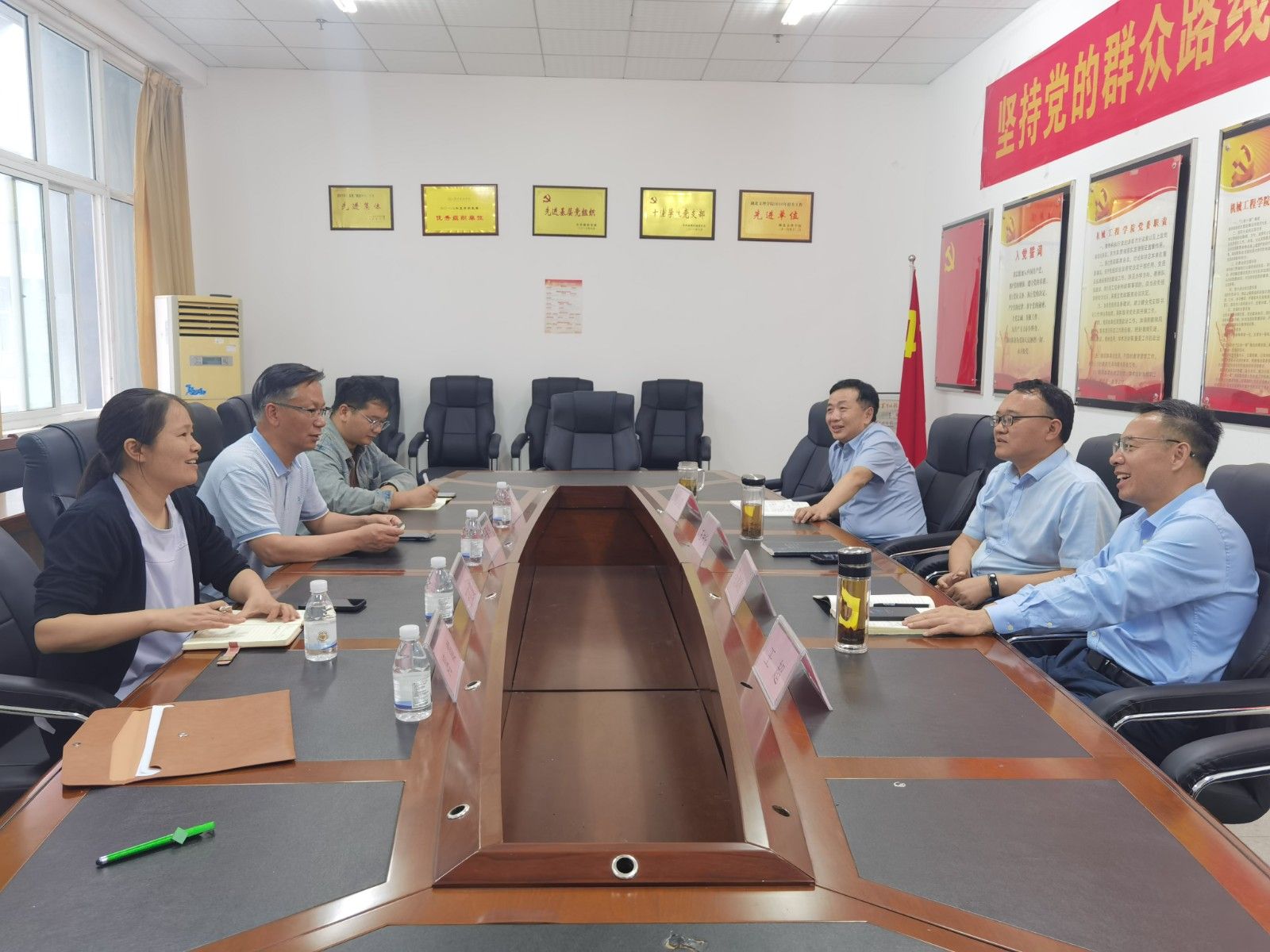 本网讯(文 王冠/图 郑樱)5月8日,汽车智能制造学院院长王保华带队一行四人赴湖北文理学院机械工程学院开展校际交流调研活动及研究生招生宣讲。湖北文理学院机械工程学院院长王中任、党委书记马永刚、副院长吴何畏、副书记王超及相关师生代表热情接待并参与座谈交流。活动旨在深化两校在学科建设、人才培养及科研创新等领域的合作,同时推动研究生优质生源共享。
