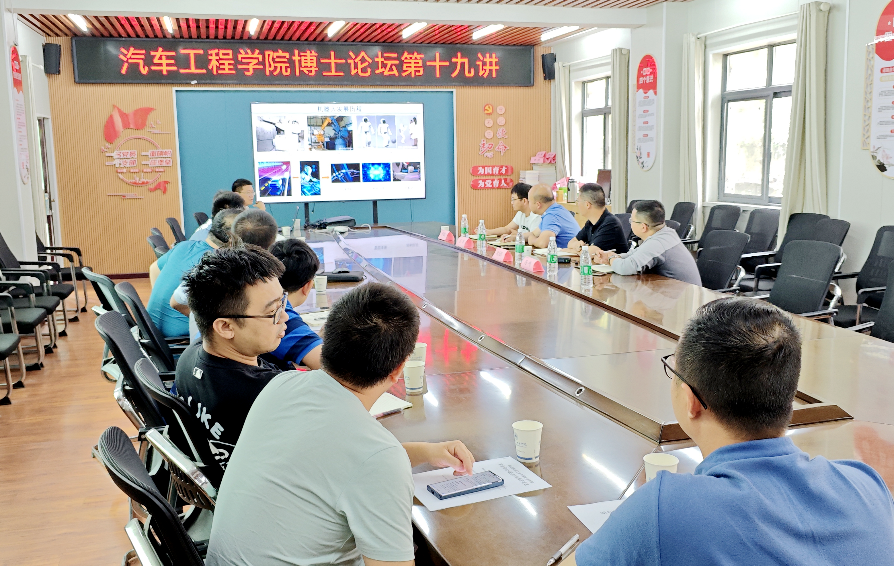 本网讯(文/图 李函)6月23日下午,十堰市发展改革委发展规划科科长王维率市产业发展研究中心李文定、杜大洋、冯一鸣一行来校共商机器人产业发展路径。汽车工程学院副院长尹长城主持会议,双方围绕机器人技术、人工智能、柔性电子皮肤等产业方向展开深度研讨。