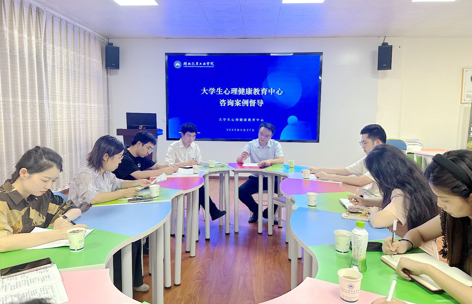 当日下午,学工部在心理健康教育中心团体辅导室组织咨询案例督导会。章劲元针对教师提出的典型个案进行结构化剖析,从咨询策略优化、风险评估要点等方面给予针对性指导,为一线心理工作者提供了实操层面的专业支持。(审稿 杜昕俊)