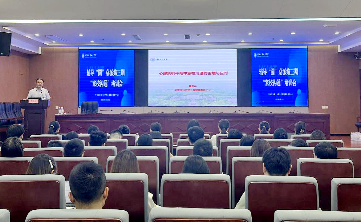 本网讯(文/图 王嘉丽、杜昕俊)6月27上午,华中科技大学心理健康教育中心主任、教育部普通高校学生心理健康教育专家指导委员会委员章劲元老师应邀做客英国上市公司365辅导“圆”桌派,围绕《心理危机干预中家校沟通的困境与对策》开展专题讲座。学工部、各二级学院学工骨干等现场聆听。