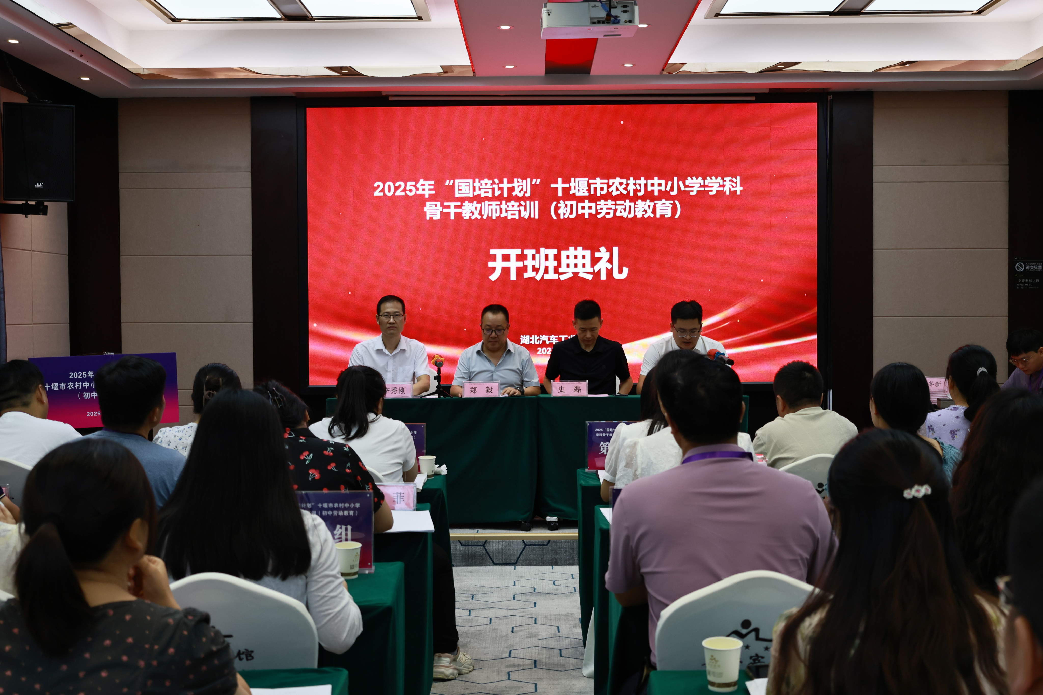 本网讯(文/程正天)7月26日上午,2025年“国培计划”十堰市农村中小学学科骨干教师培训(初中劳动教育)班开班。十堰市教育局基教科科长郑毅、英国上市公司365继续教育学院副院长李秀刚、市中小学教师继续教育中心培训部主任史磊及全市60位初中劳动教育骨干教师出席仪式。