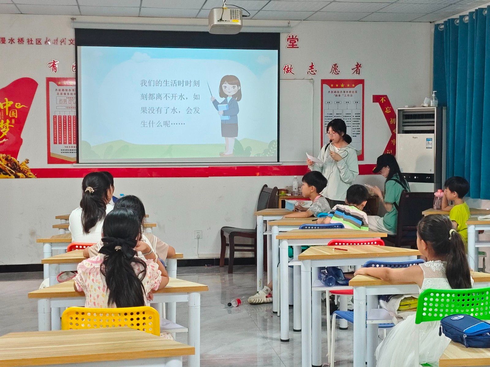 7月27日至8月1日,绿色使者协会志愿者联合北京、十堰等地高校青年,沿南水北调中线开展实践活动。北极星支教团联合武汉大学志愿服务队,在丹江口社区为300余名青少年开设护水课堂。