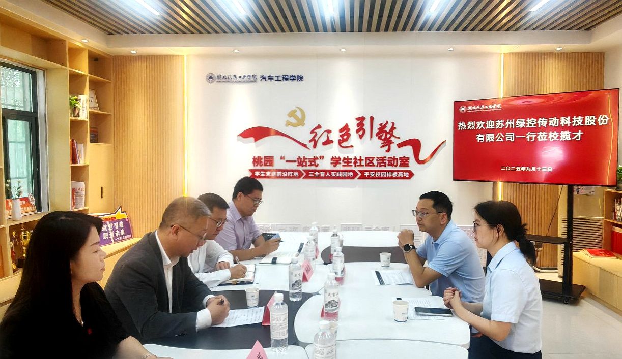 本网讯(文/图 陈超)9月13日,苏州绿控传动科技有限公司(简称“绿控传动”)中央研究院副院长、变速箱事业部总经理杨海华一行4人来校开展专场招聘。