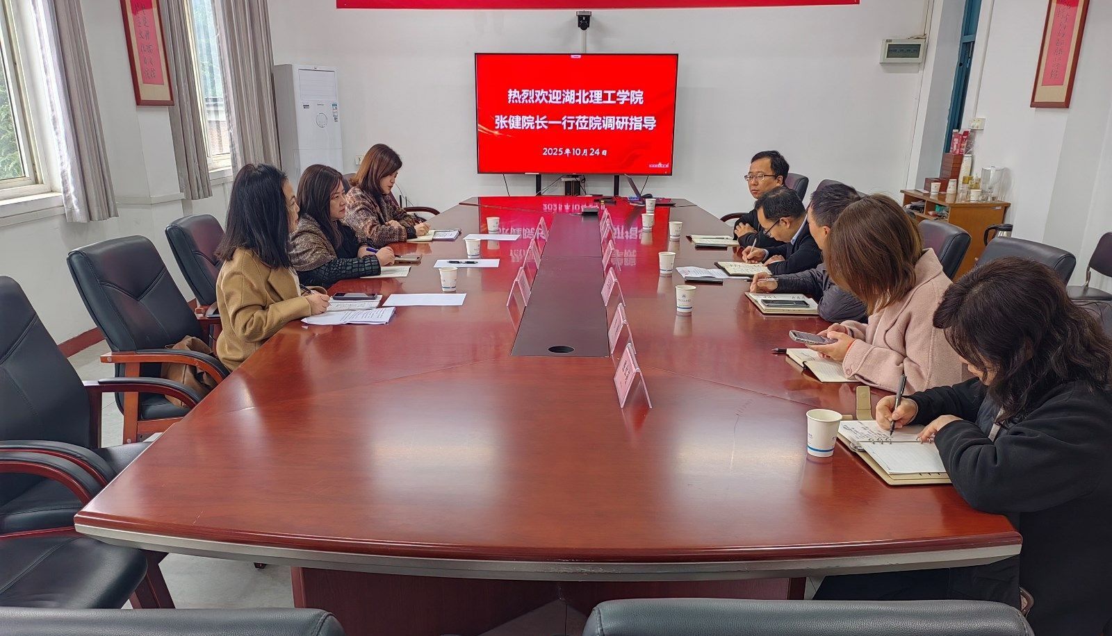 本报讯(文 广娟/图 龚建强)10月24日上午,湖北理工学院外国语学院院长张健、副院长张嵋琳、管振彬一行赴外语外贸学院,就“十五五”发展规划思路、外语学科专业建设及人才培养改革等工作进行专题调研。