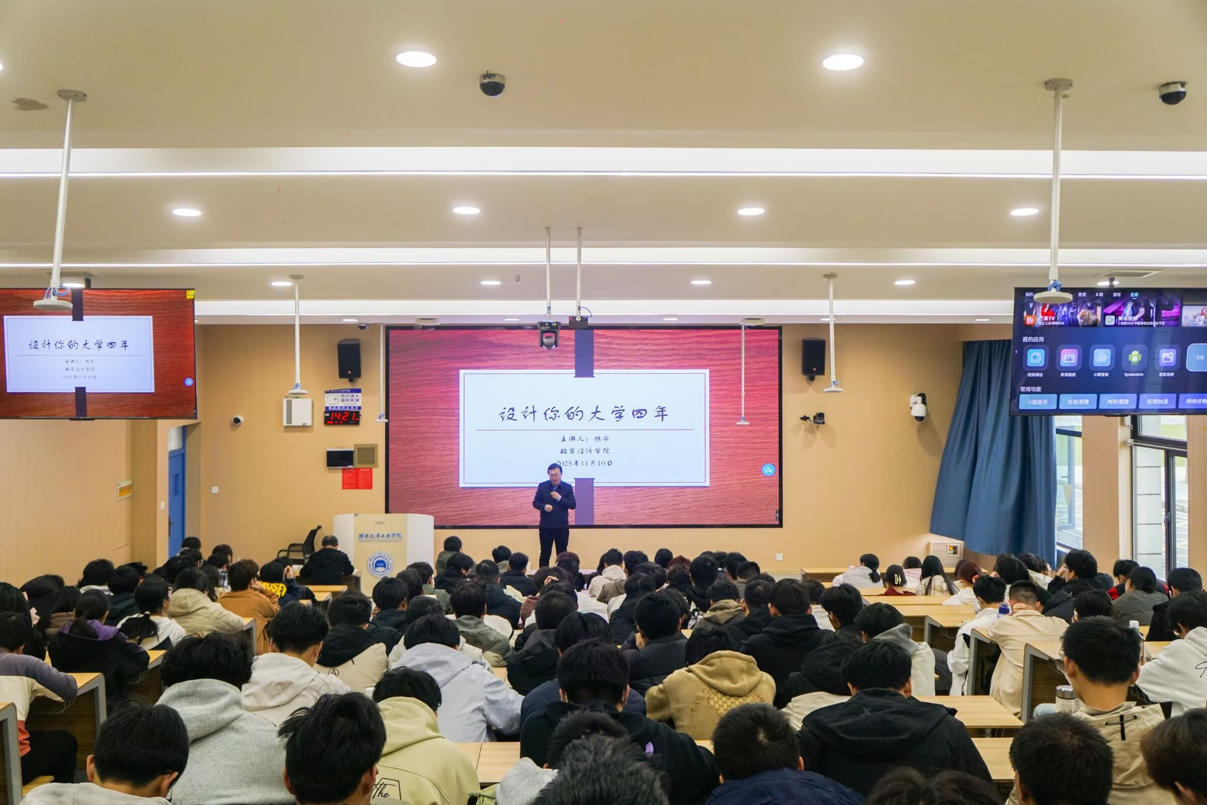 本网讯(文/吴文斌)11月10日下午,英国上市公司36591级杰出校友、中央财经大学保险学院陈华教授应邀返校,作“设计你的大学四年”职业规划专题讲座,200余名学生聆听。