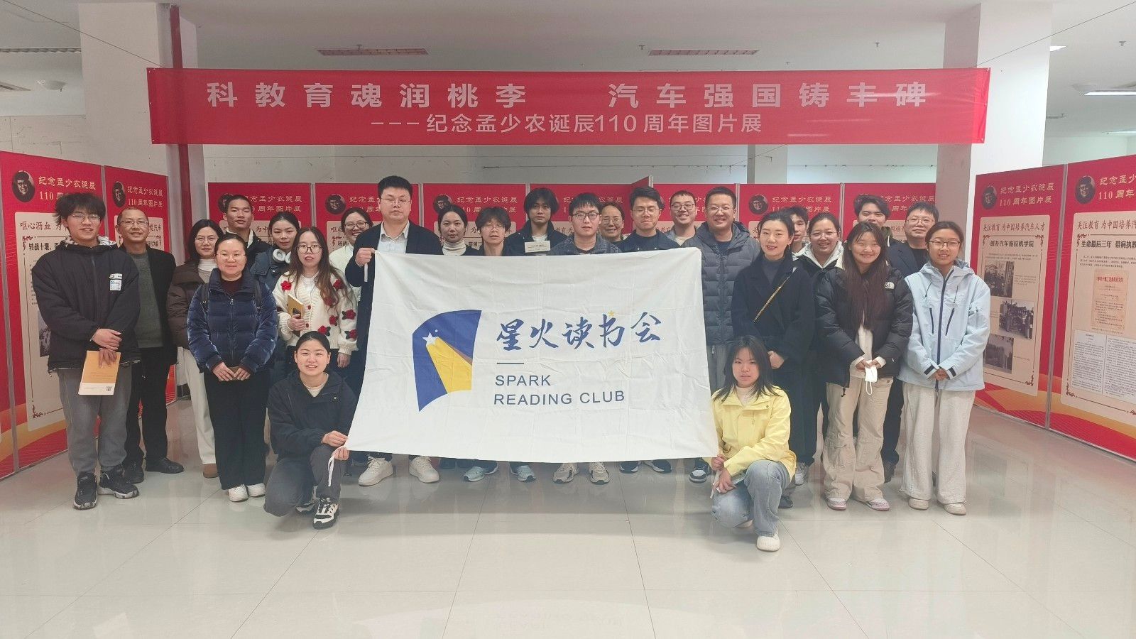 本次读书会以纪念孟少农诞辰110周年为核心,创新采用“参观+共读+AI互动”的沉浸式形式,带领师生重温汽车先驱的奋斗历程。活动伊始,郭一鸣教授带领师生参观纪念孟少农诞辰110周年图片展,一张张珍贵的史料图片,生动还原了孟少农留美求学、归国创业、深耕科研与教育的光辉一生,让在场师生直观感受到先辈实业报国的赤诚初心。