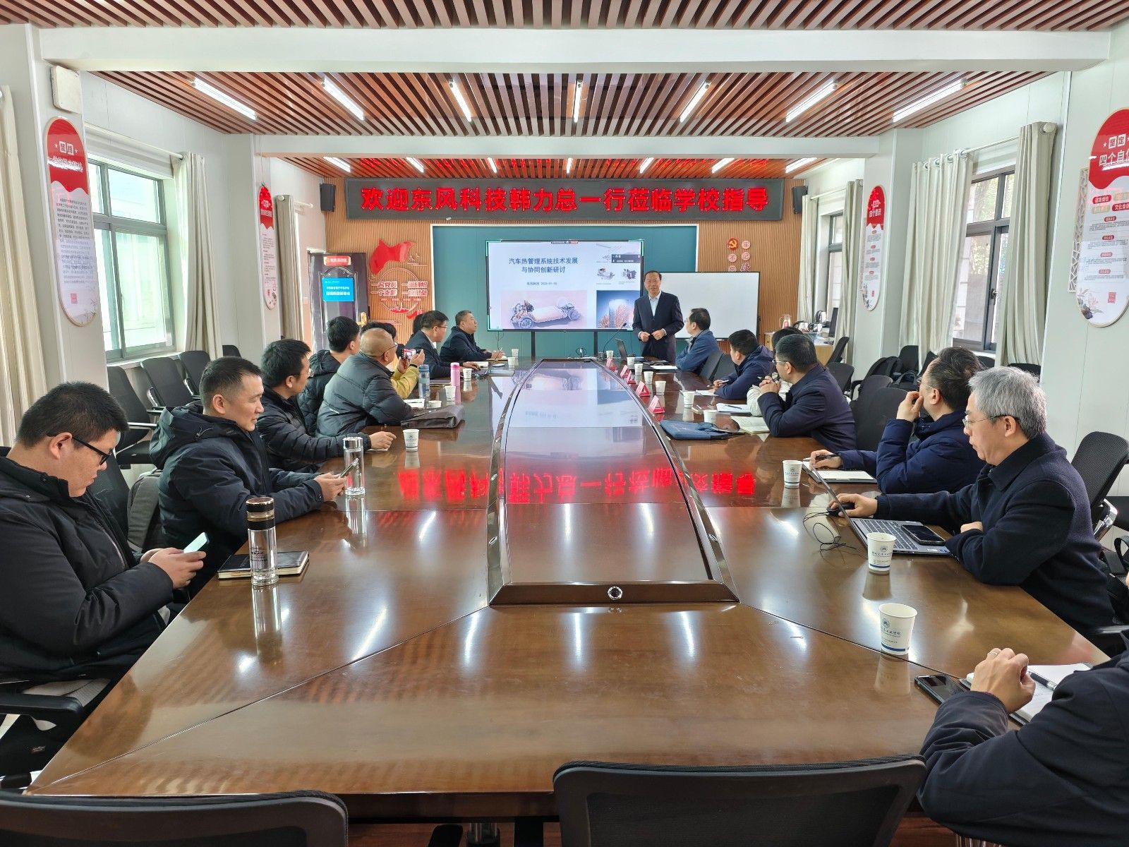本网讯(文/图 李函)1月15日下午,汽车工程学院邀请东风电子科技股份有限公司专职董事韩力在汽车工程学院会议室做报告,题目为“汽车热管理系统技术发展与协同创新研讨”。东风-派恩汽车铝热交换器有限公司总经理陈少涛、技术部长代立及全校热管理相关专业教师、研究生参加了活动,本次报告由汽车工程学院院长胡明茂教授主持。