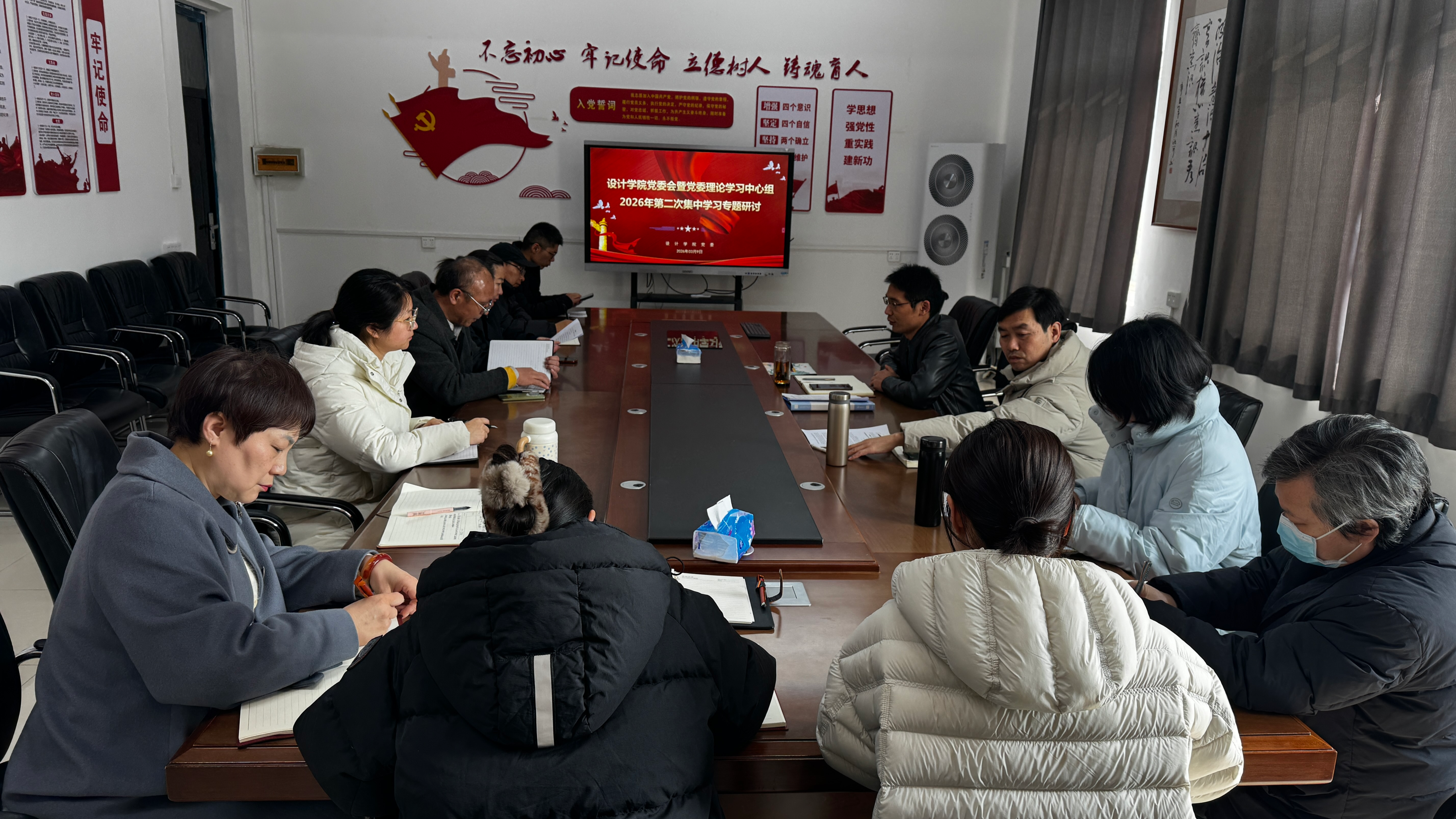 本网讯(文 陈梦燕/图 吕文卉)3月9日下午,设计学院召开党委会暨党委理论学习中心组(扩大)会议,专题学习贯彻习近平总书记关于树立和践行正确政绩观的重要论述及有关会议精神,部署学院党委树立和践行正确政绩观学习教育。