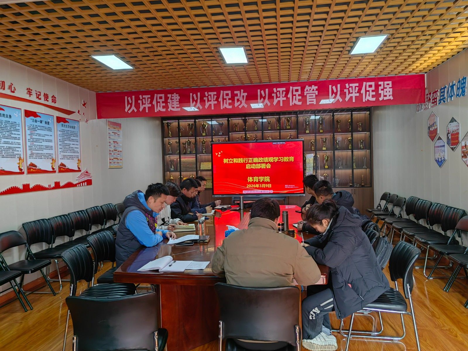 熊玲强调,树立和践行正确政绩观是推动学院党建工作和体育教育事业高质量发展的关键,全院党员干部要提高政治站位,紧扣体育育人初心,把准干事创业方向。她结合学院实际作出部署,要求全体参会人员深化理论学习、查摆自身问题、狠抓整改落实,将学习成果转化为履职实效,聚焦师生需求,扎实推进学院教学、人才培养等各项工作。
