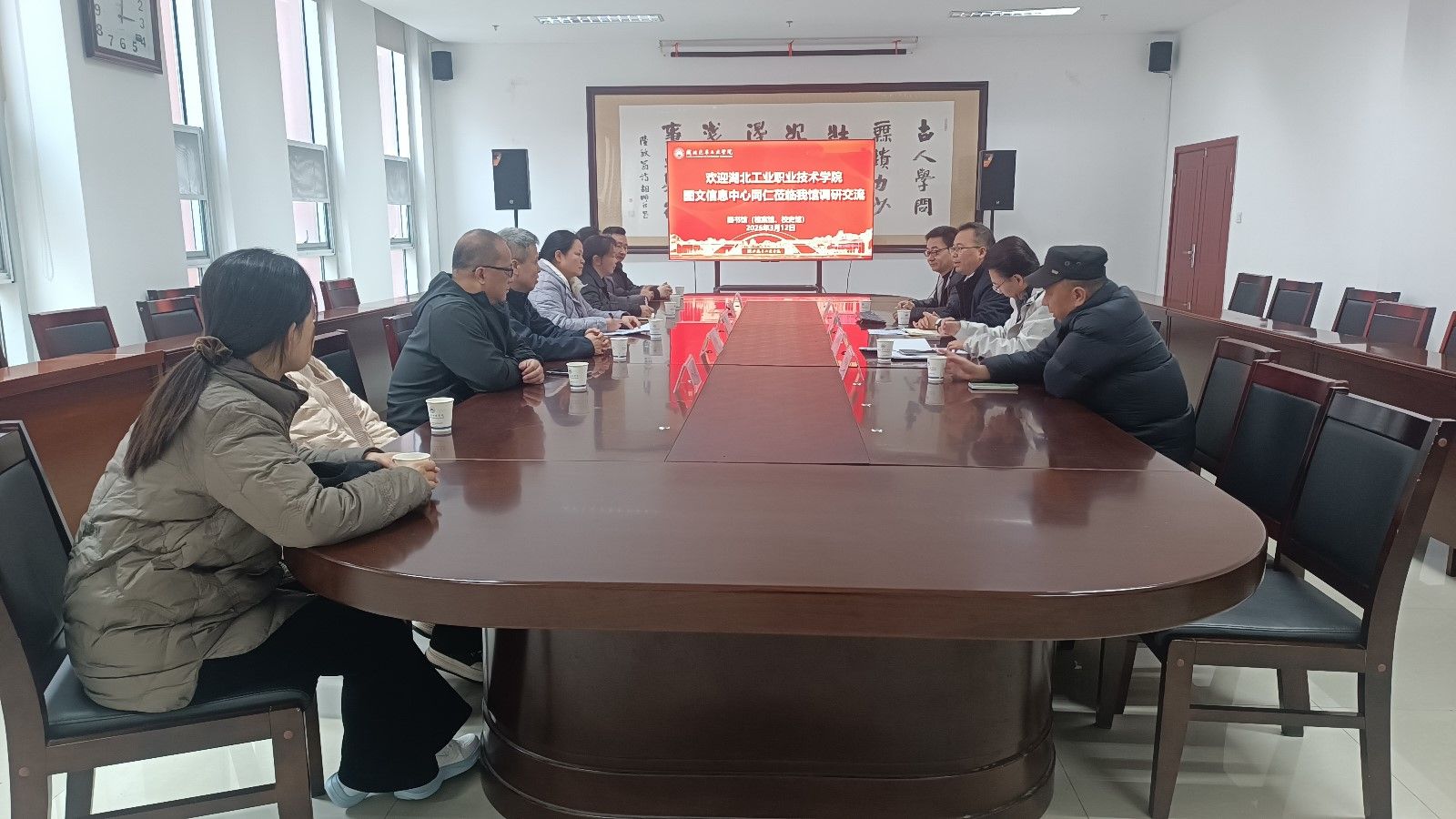 本网讯(文/图 徐常燕)3月12日下午,湖北工业职业技术学院图文信息中心副主任马宏丽、樊韩波一行莅临英国上市公司365调研交流,图书馆(档案馆、校史馆)领导热情接待。