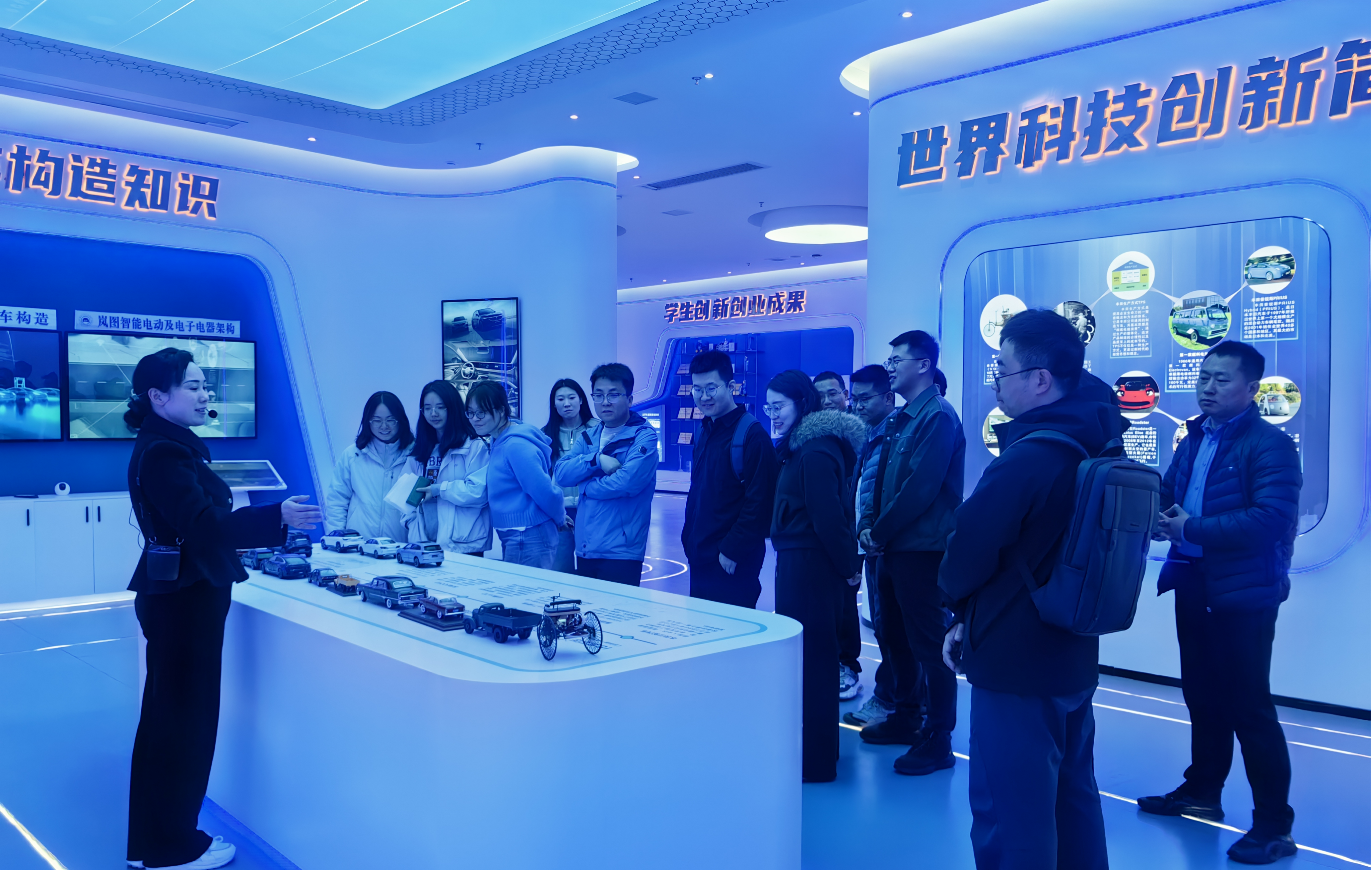在院长熊永臣带领下,与会人员首先参观了汽车科创科普基地,新进教师对学校科研平台与学科特色有了直观了解。