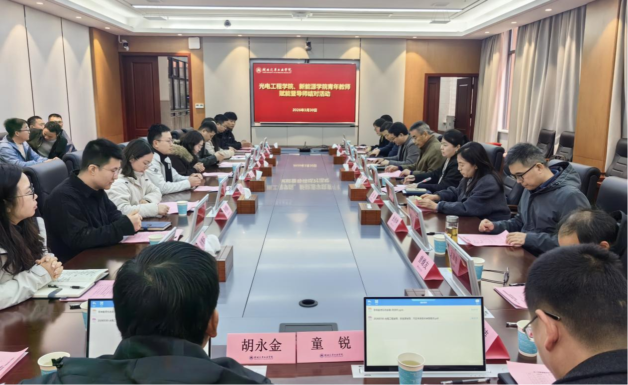 本网讯(文 张琴/图 汪栖如、吴晴)3月30日下午,光电工程学院、新能源学院在产教大楼举行新进教师赋能暨导师结对活动。本次活动以“传帮带启新程,强本领促成长”为主题,旨在通过参观学习、导师结对、经验交流等方式,助力青年教师快速成长,进一步加强师资队伍建设。校督导组组长毛高波、人事处副处长梁露、学院领导班子、系部办公室负责人、指导教师代表及近两年新进教师参加了活动。