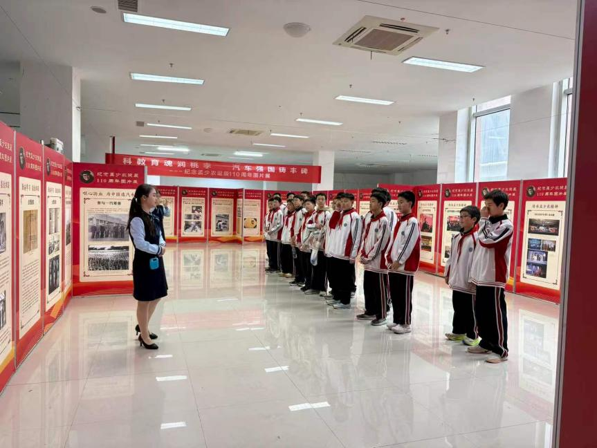 本网讯(文/图 常欣欣、张莹、何沛然)4月9日下午,十堰市东风五中120余名师生走进校园,开展“美育润心向美而行,科技筑梦笃行致远”主题实践活动,在艺术熏陶与科技体验中感悟艺术魅力、领略科技力量、筑梦汽车强国。此次活动由图书馆、汽车材料学院、设计学院、美育研究中心共同组织。