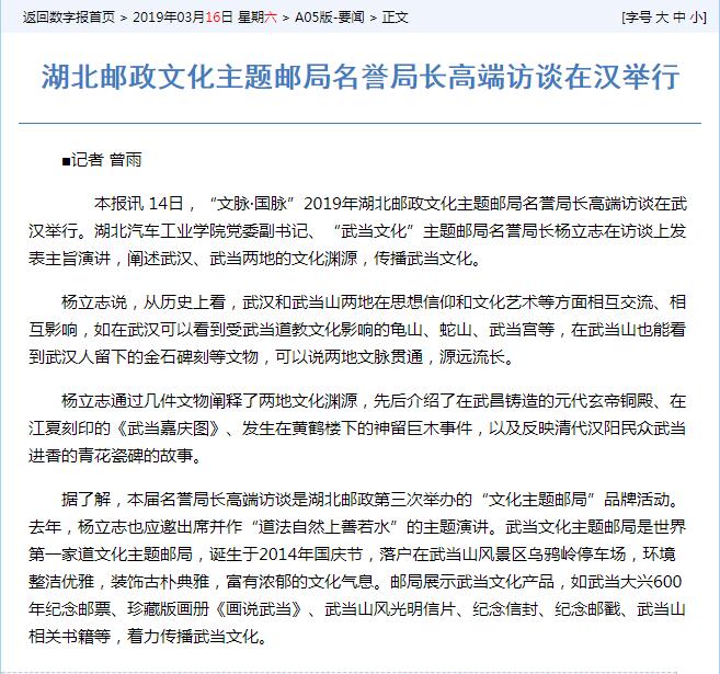 【十堰晚报】湖北邮政文化主题邮局名誉局长高端访谈在汉举行