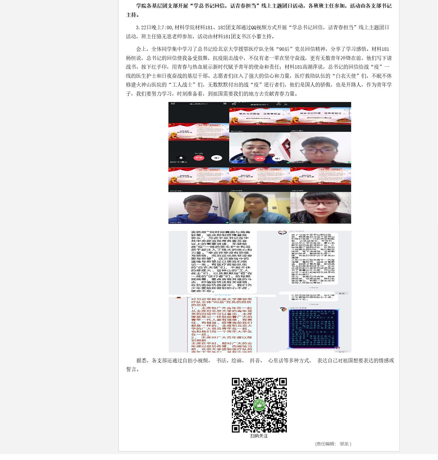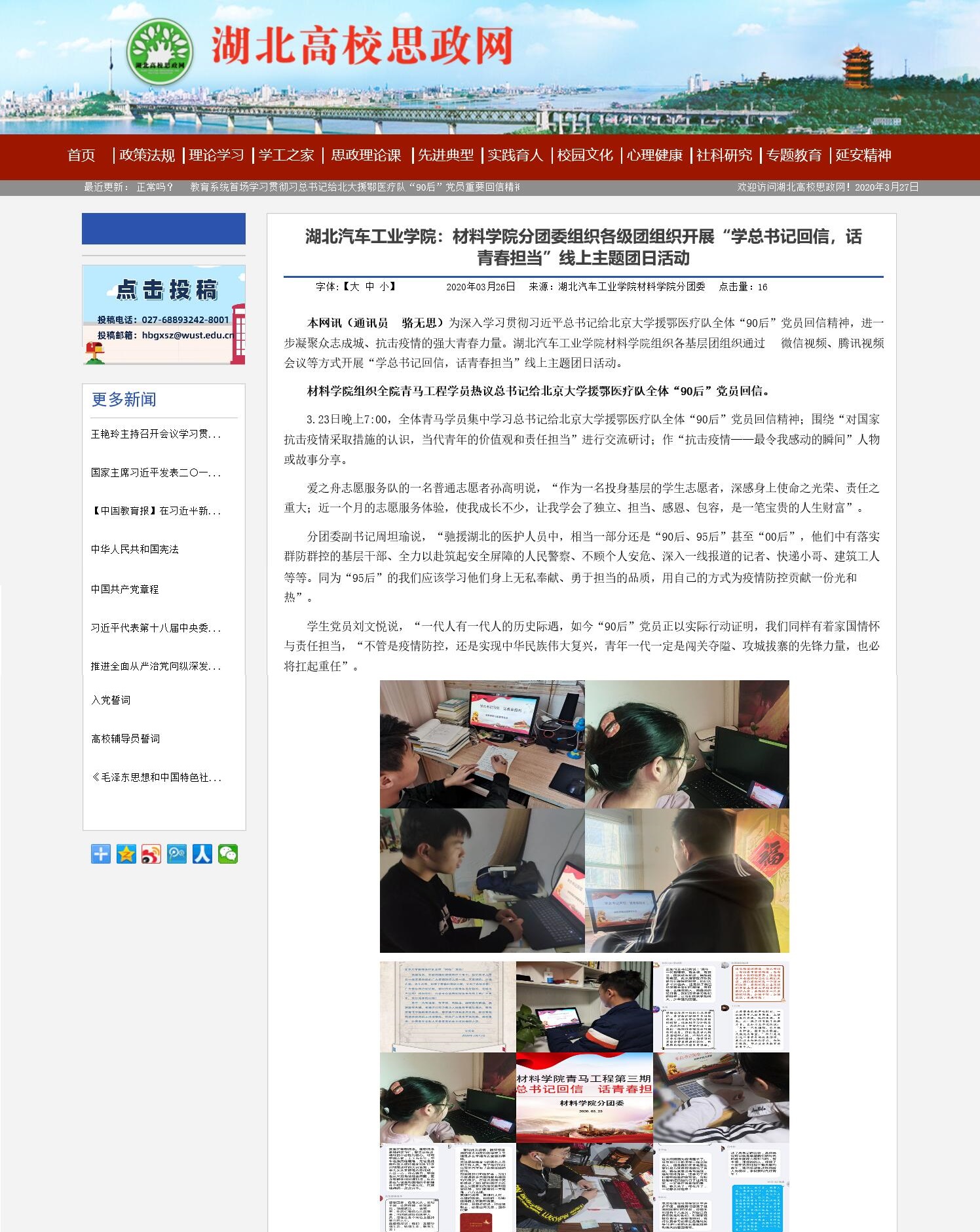 【湖北高校思政网】英国上市公司365:材料学院分团委组织各级团组织开展“学总书记回信,话青春担当”线上主题团日活动
