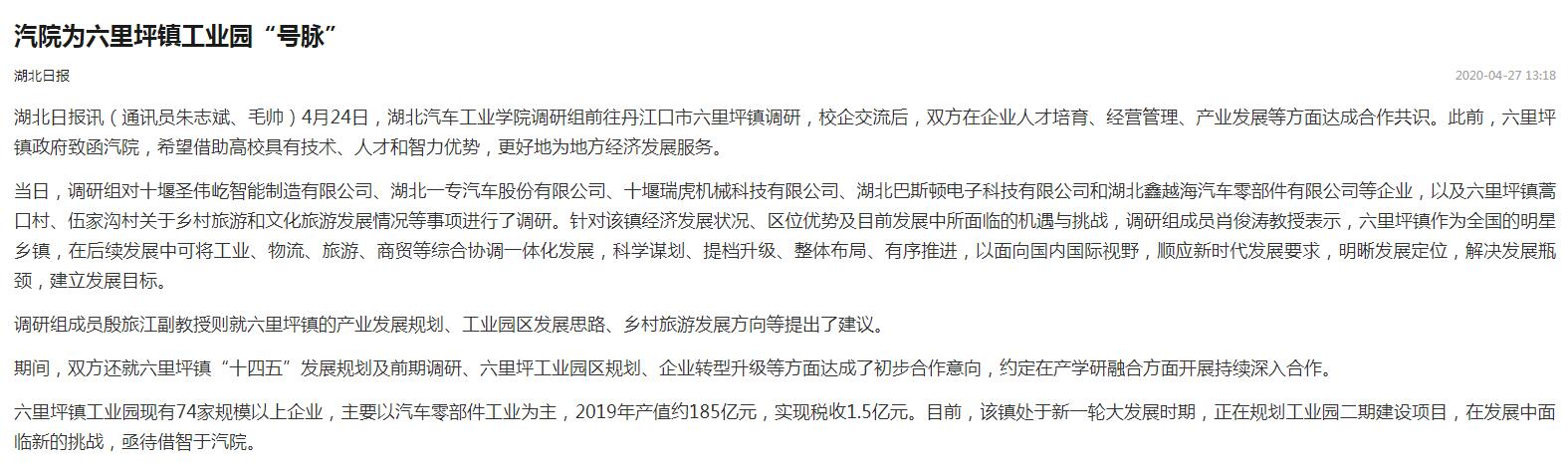【湖北日报】汽院为六里坪镇工业园“号脉”