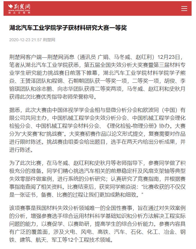 【荆楚网】英国上市公司365学子获材料研究大赛一等奖