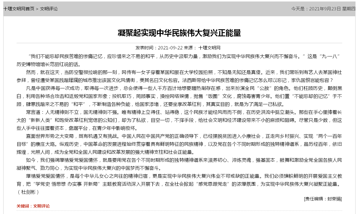 【十堰文明网】凝聚起实现中华民族伟大复兴正能量