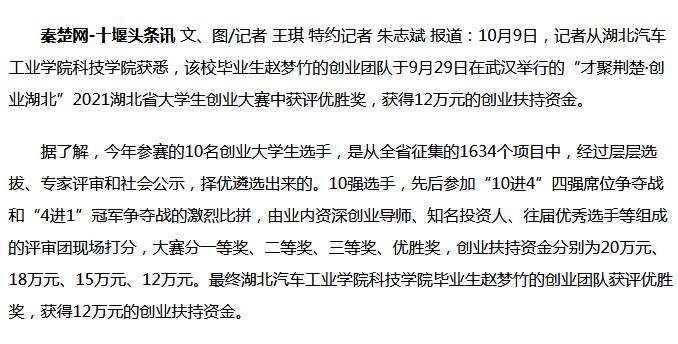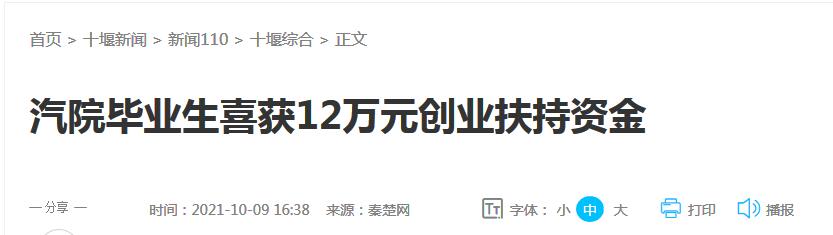 【秦楚网】汽院毕业生喜获12万元创业扶持资金