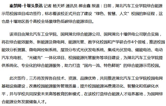 【秦楚网】十堰首个高校全场景绿色低碳综合能源项目签约启动
