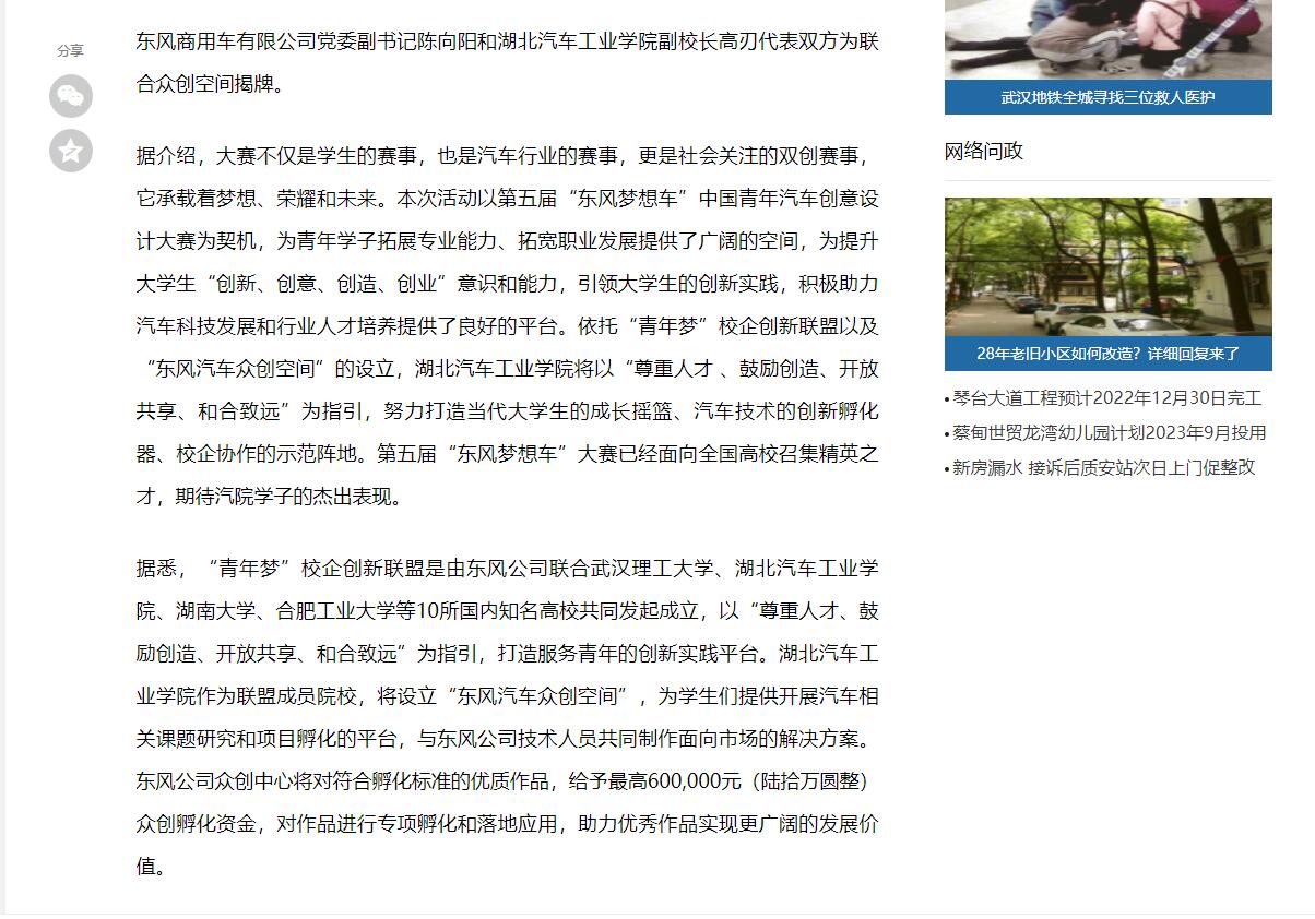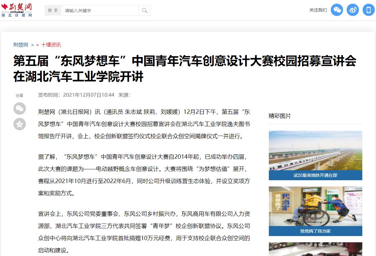 【荆楚网】第五届“东风梦想车”中国青年汽车创意设计大赛校园招募宣讲会在英国上市公司365开讲