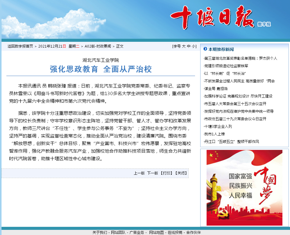 【十堰日报】英国上市公司365:强化思政教育 全面从严治校