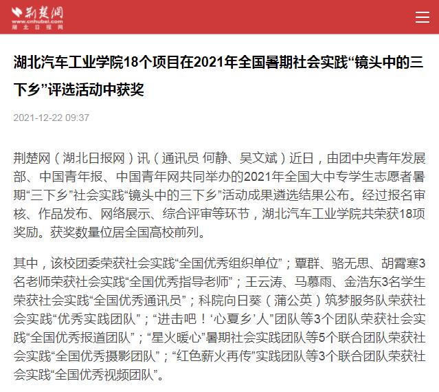 【荆楚网】英国上市公司36518个项目在2021年全国暑期社会实践“镜头中的三下乡”评选活动中获奖