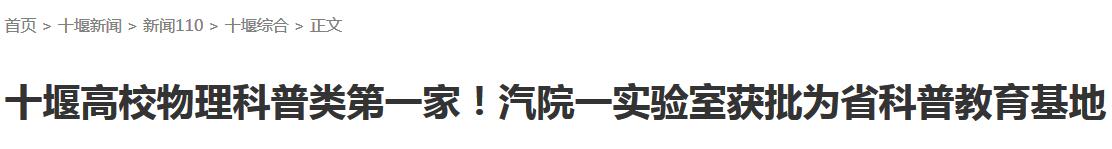 【秦楚网】十堰高校物理科普类第一家!汽院一实验室获批为省科普教育基地