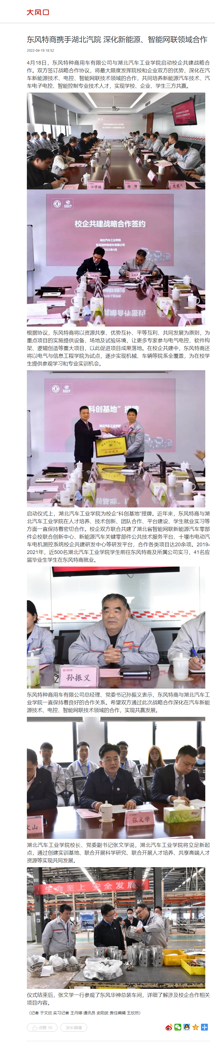 【大风口】东风特商携手湖北汽院 深化新能源、智能网联领域合作