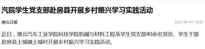 【湖北日报】汽院学生党支部赴房县开展乡村振兴学习实践活动