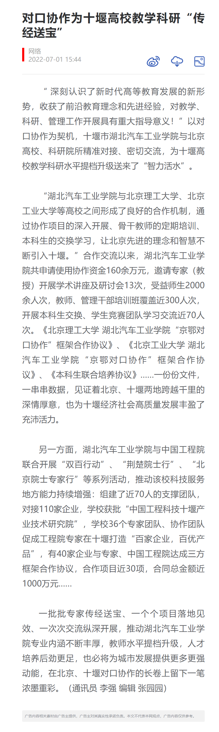 【北晚在线】对口协作为十堰高校教学科研“传经送宝”