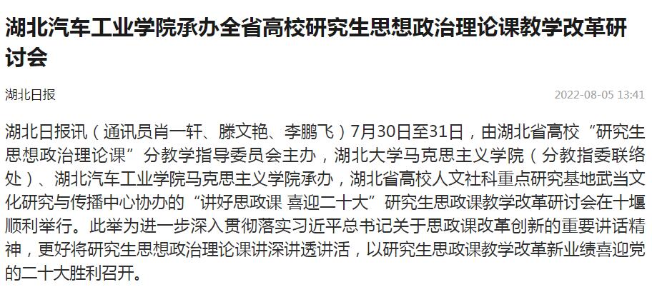 【湖北日报】英国上市公司365承办全省高校研究生思想政治理论课教学改革研讨会
