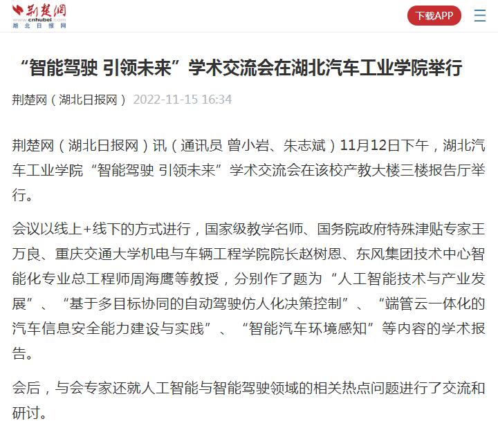 【荆楚网(湖北日报网)】“智能驾驶 引领未来”学术交流会在英国上市公司365举行