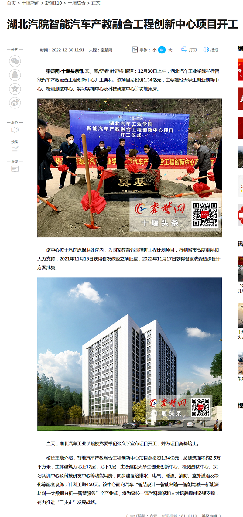 【秦楚网】湖北汽院智能汽车产教融合工程创新中心项目开工