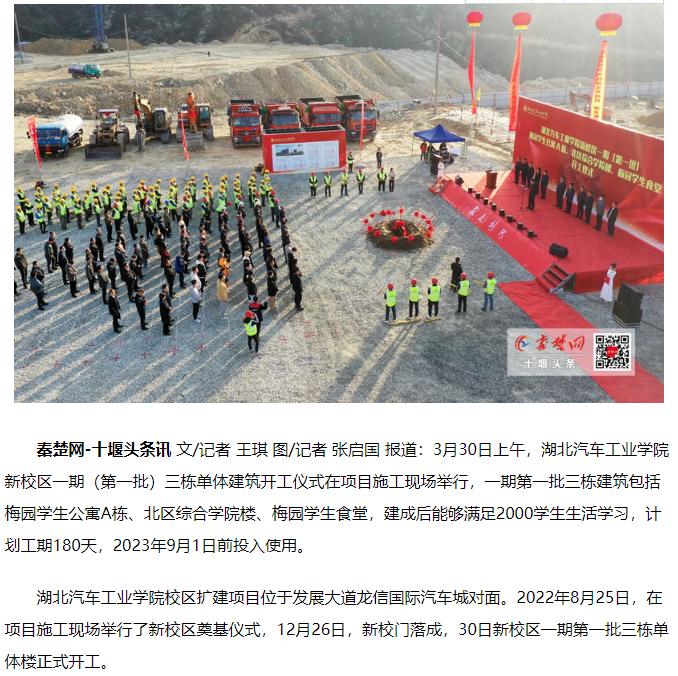 【秦楚网】今年9月投用!可容纳2000学生!汽院新校区三栋楼开工
